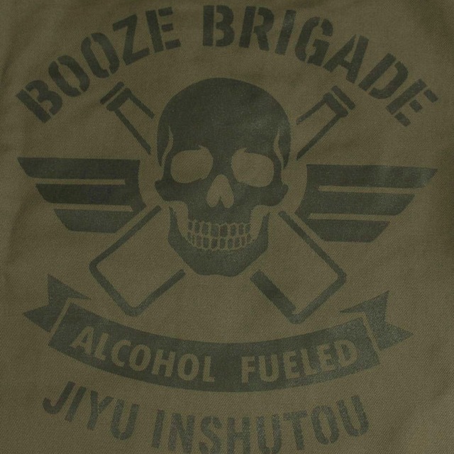 オランダ軍本物ファティーグシャツにBOOZE BRIGADE(大酒旅団)のロゴをバックプリント。 油性インクと水性インクを調合使用し、エンジンオイルで描かれたよう静かな光沢を放ちながらも、隠密行動が可能なプリントに仕上げました。 自由飲酒党を強調されたい場合は、ピンバッジを併用してください。 オランダ軍《日本サイズ相当表》 ミリタリーサイズ 実寸の特徴 オランダサイズ M(46/48) 身幅54 / 肩44 / 着丈77 【日本L(標準)】 170〜178cmの標準〜着丈が長い L 相当となります。 ボディの特徴: 右肩のオランダ国旗がポイント (国旗ワッペンは右肩のみです) コットン素材、胸ポケット2つ カラーはベージュがかったオーリーヴ。 ロットにより、微妙に色が違います。 軍用品ストックのため、しわ、擦れ、汚れ等があります。 本物の味として、お楽しみください。