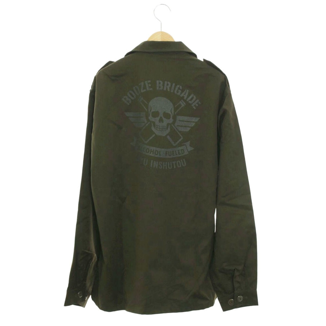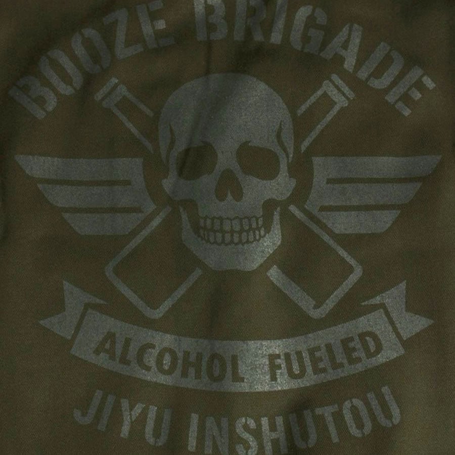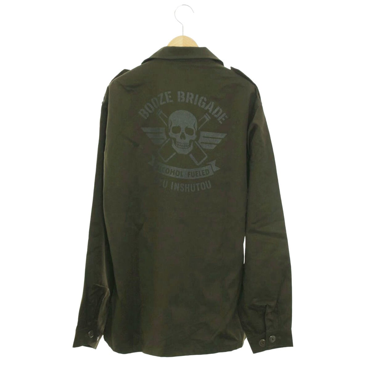 オーストリア軍本物のフィールドシャツ。デッドストック品を入手して、自由飲酒等BOOZE BRIGADE(大酒旅団)のロゴをバックプリント。
