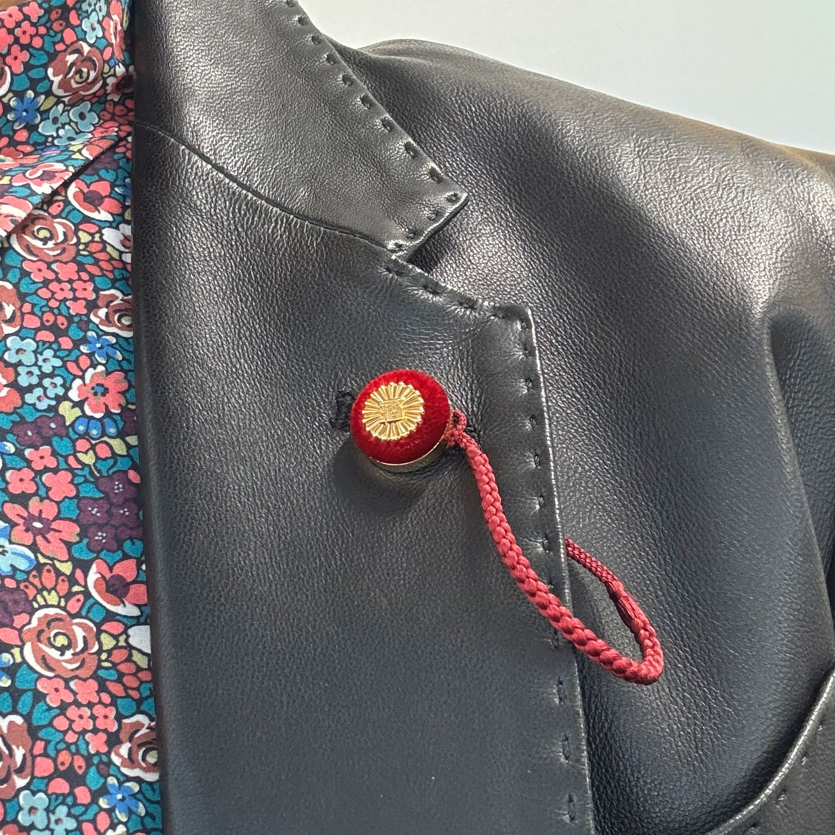金メッキ仕上げの徽章は、裏タイタック式で装着しやすく、ジャケットの襟元に静かな存在感を放ちます。
