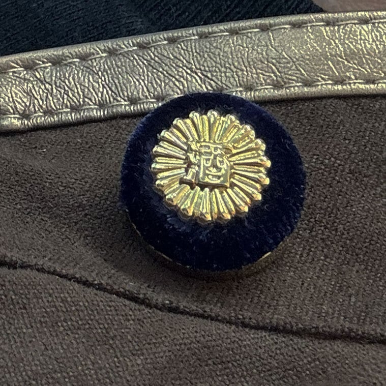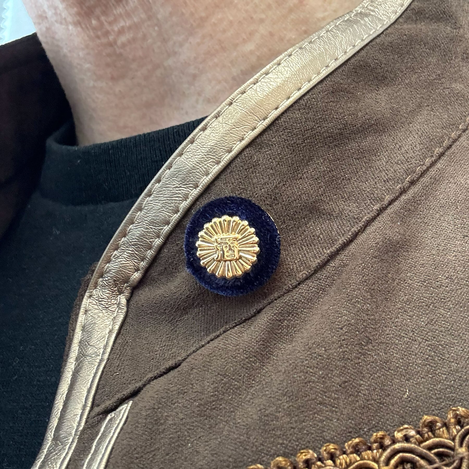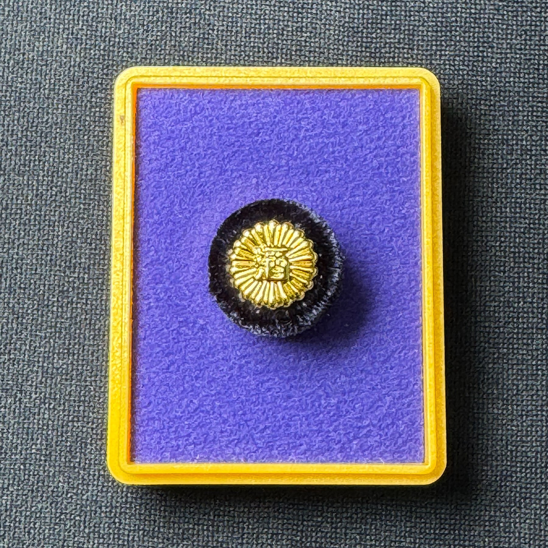 金メッキ仕上げの徽章は、裏タイタック式で装着しやすく、ジャケットの襟元に静かな存在感を放ちます。